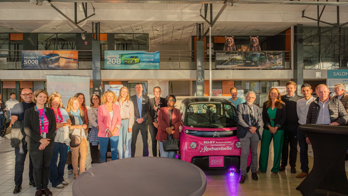 La remise officielle de la Petite AMI Rose s’est tenue dans une atmosphère empreinte d’émotion et de fierté, le 11 septembre 2025, au sein de la concession Citroën Caen Harris.